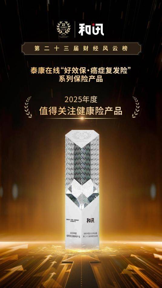 在此背景下,泰康在线前瞻性布局带病体保险领域,其“好效保·癌症复发险”系列保险产品通过“医药融合”创新赋能,精准填补市场空白,为数以万计的家庭提供了关键的经济与心理支持。基于此卓越实践,该系列产品于近日在由联办集团、和讯联合主办,财经中国会承办的「财经中国2025年会暨第23届财经风云榜」评选中,荣膺“2025年度值得关注健康险产品”,赢得专业认可。