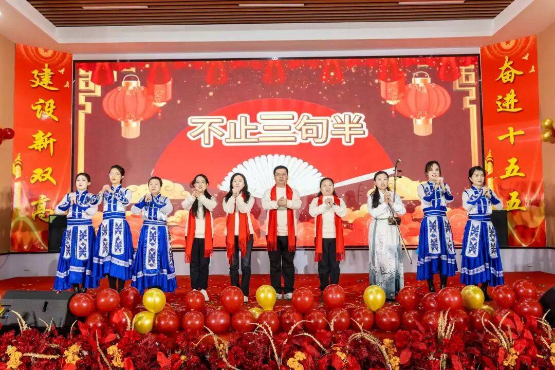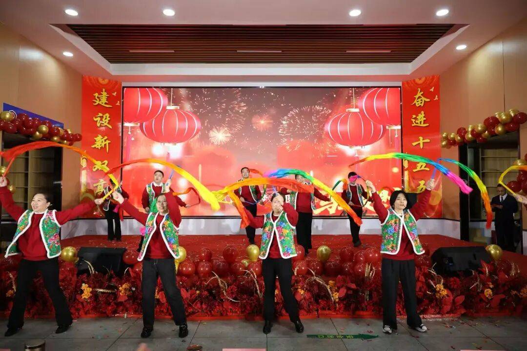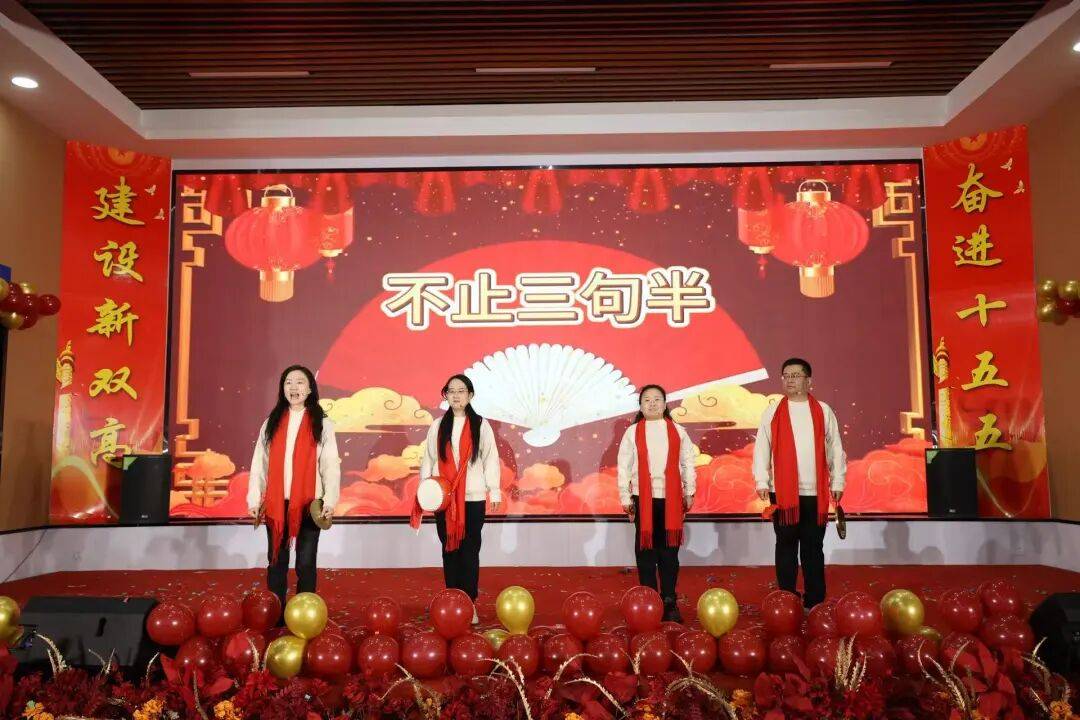 教学教辅分工会选送的节目《我们都是追梦人》,以兼融朗诵与欢快歌舞的形式,不止通过朗诵阐释教学岗深耕育人、教辅岗筑牢保障的价值,更通过喜庆的歌舞互动表演使现场老师们提前感受到新年新气象的欢愉。