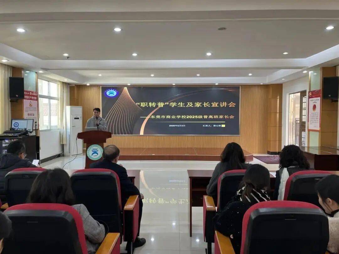 为帮助学生顺利融入普高学习,缓解学生心理压力与家长的焦虑情绪,东莞市商业学校普高部面向“职转普”学生及家长举办专场宣讲会。此次宣讲紧扣中职学生转入普高后的适应与发展核心,围绕管理规范、学习规划、选科指导三大重点展开,明确了手机管理要求、学业压力应对、假期学习安排及科学选科等关键内容,为学生和家长答疑解惑、指明方向。