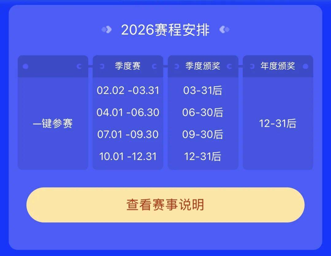 另外温馨提醒:由于春节假期临近,2025年第四季度及年度的赛事奖金,将顺延至2026年3月下旬发放,敬请耐心等待。
