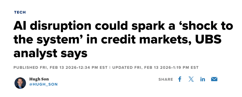 Matthew Mish同时提示,人工智能转型进程可能更趋急促,极端情景下违约率或达到基准预期的两倍,触发市场所称的“尾部风险”,进而引发贷款市场信贷紧缩,杠杆信贷大范围重新定价,对整个金融系统形成冲击。